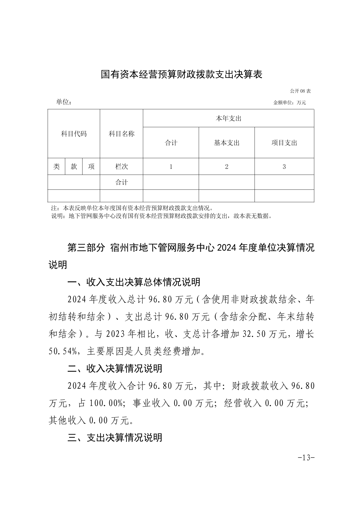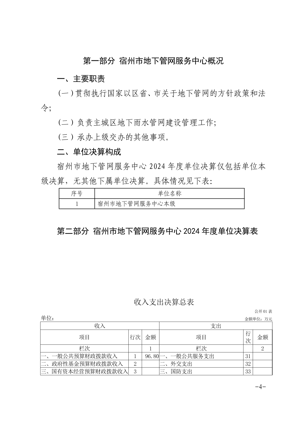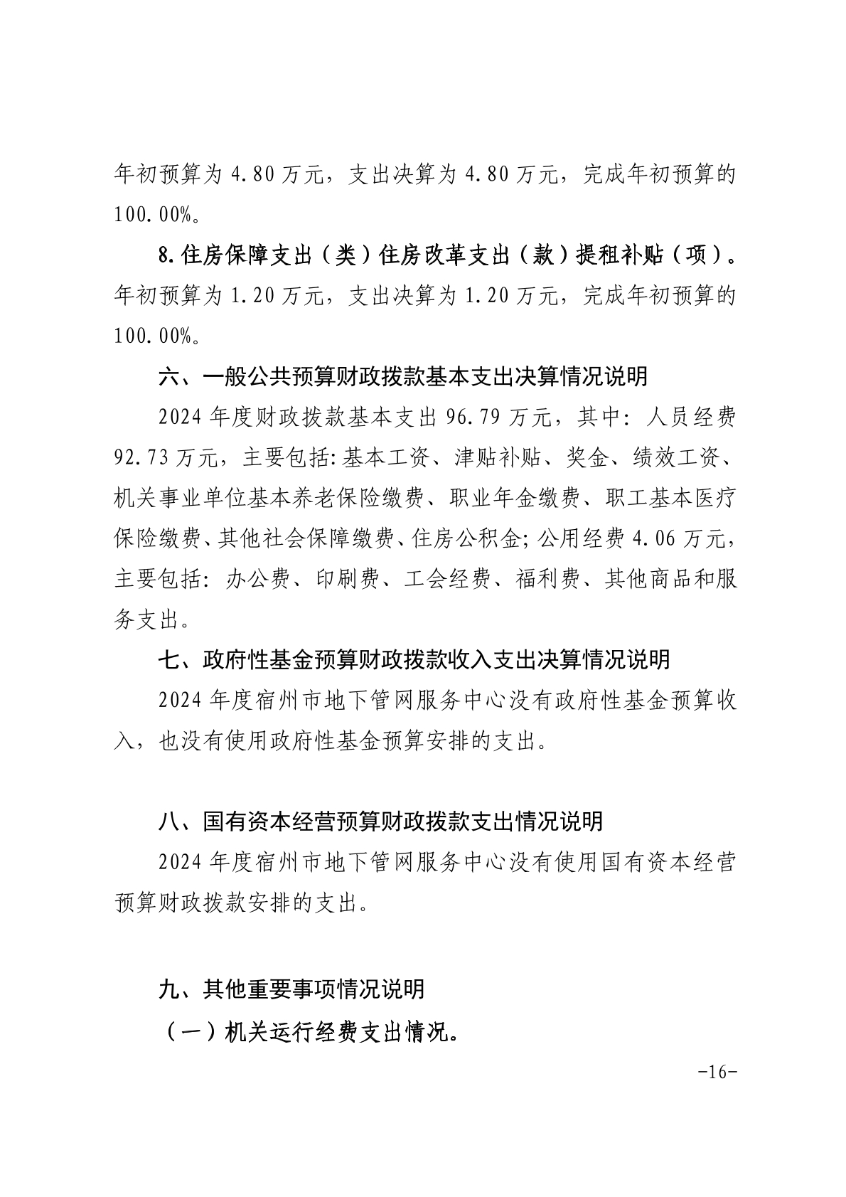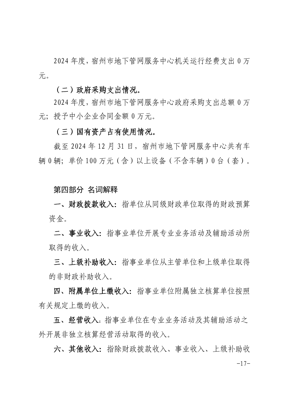 宿州市地下管网服务中心2024年度单位决算 |