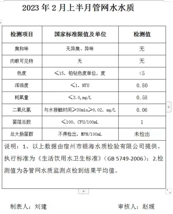 2023年2月上半月管网水水质