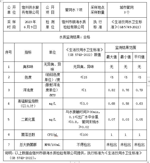 2023年6月9日管网水水质