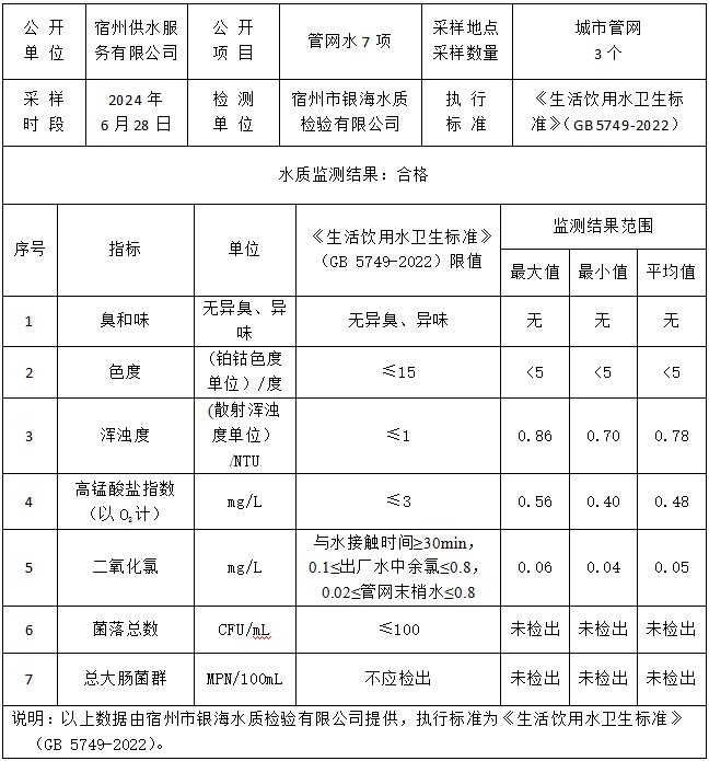 2024年6月28日管网水水质