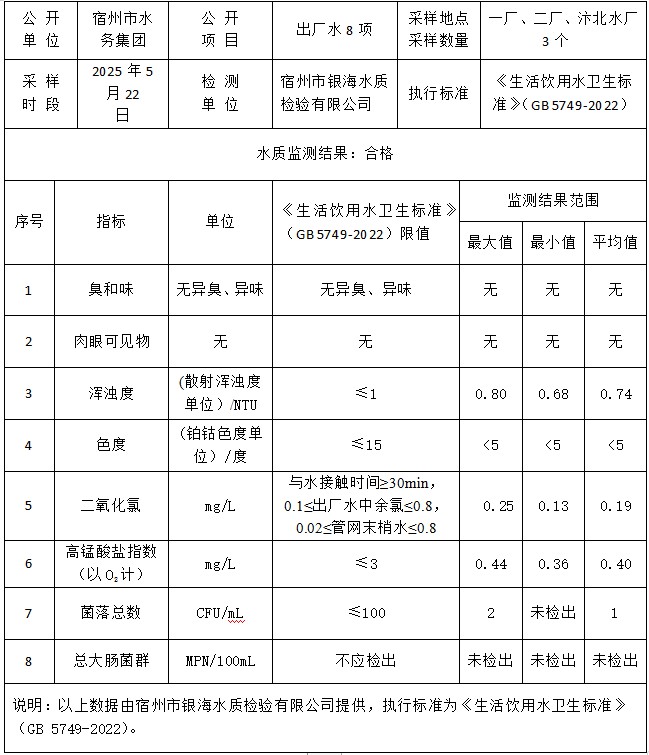 2025年5月22日出厂水水质
