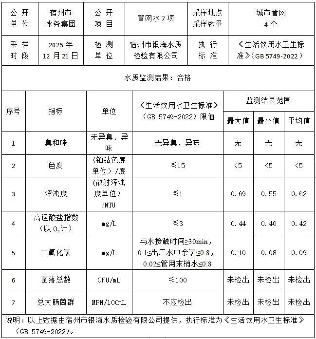 2025年12月21日管网水水质