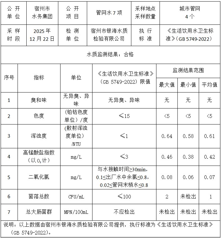2025年12月22日管网水水质