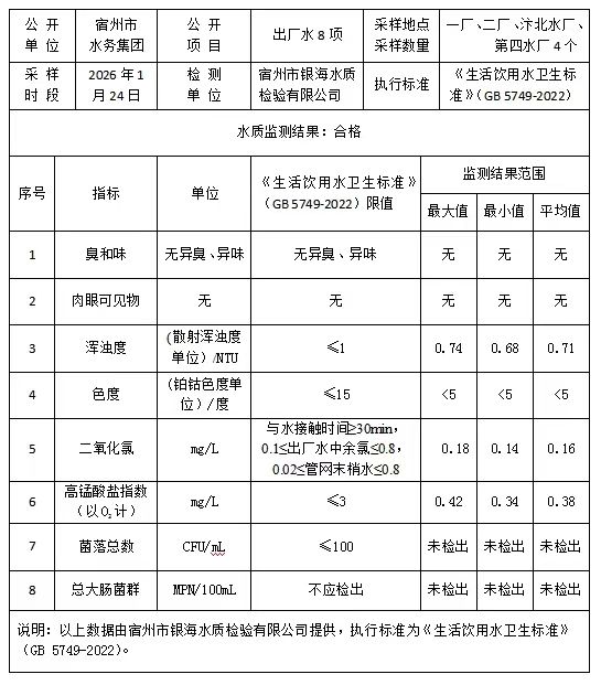 2026年1月24日出厂水水质