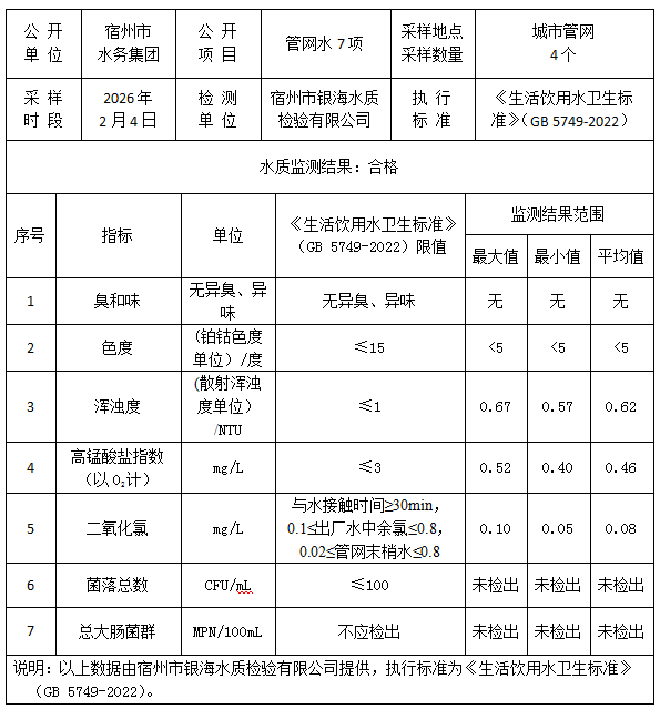 2026年2月4日管网水水质