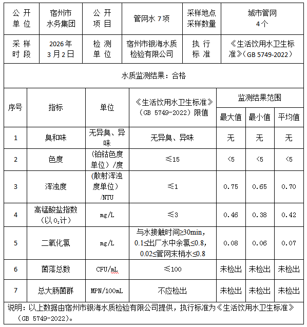 2026年3月2日管网水水质