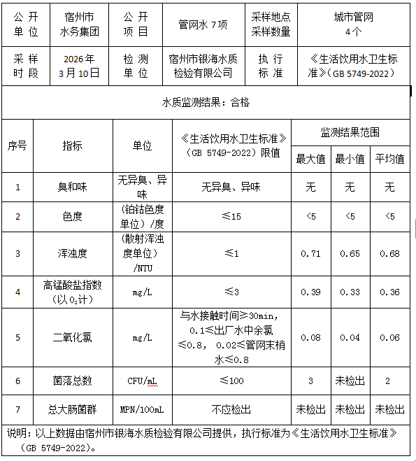 2026年3月10日管网水水质