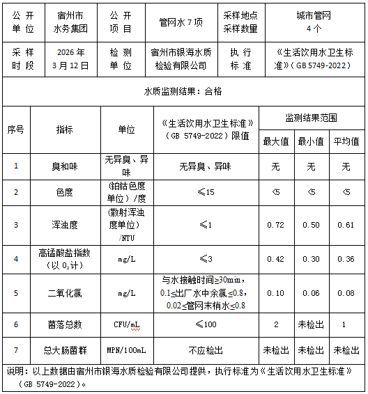 2026年3月12日管网水水质