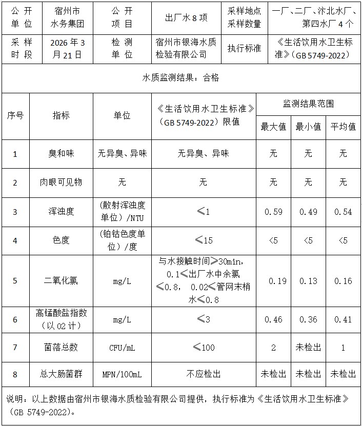 2026年3月21日出厂水水质