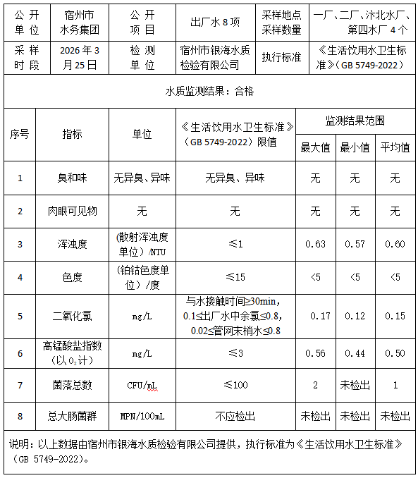 2026年3月25日出厂水水质