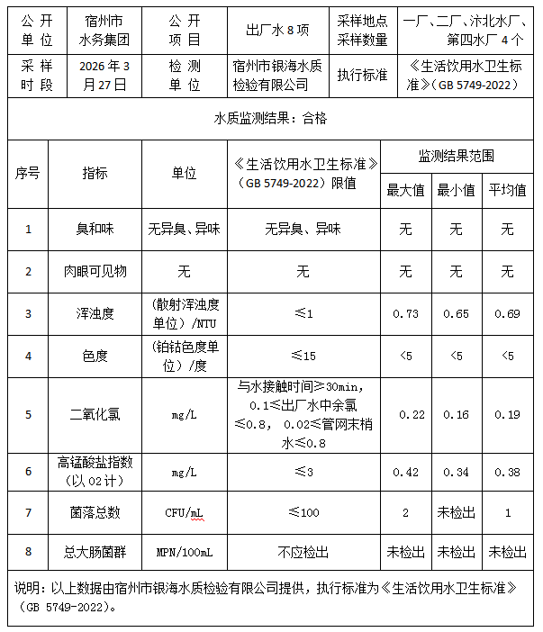 2026年3月27日出厂水水质