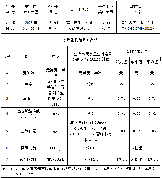 2026年3月30日管网水水质