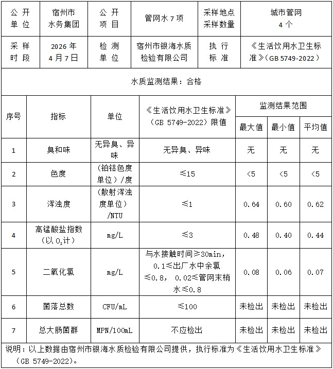 2026年4月7日管网水水质