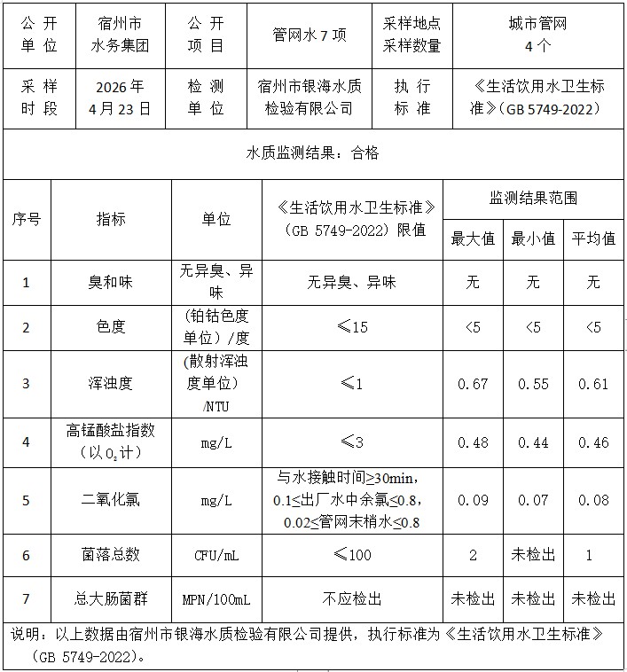 2026年4月23日管网水水质