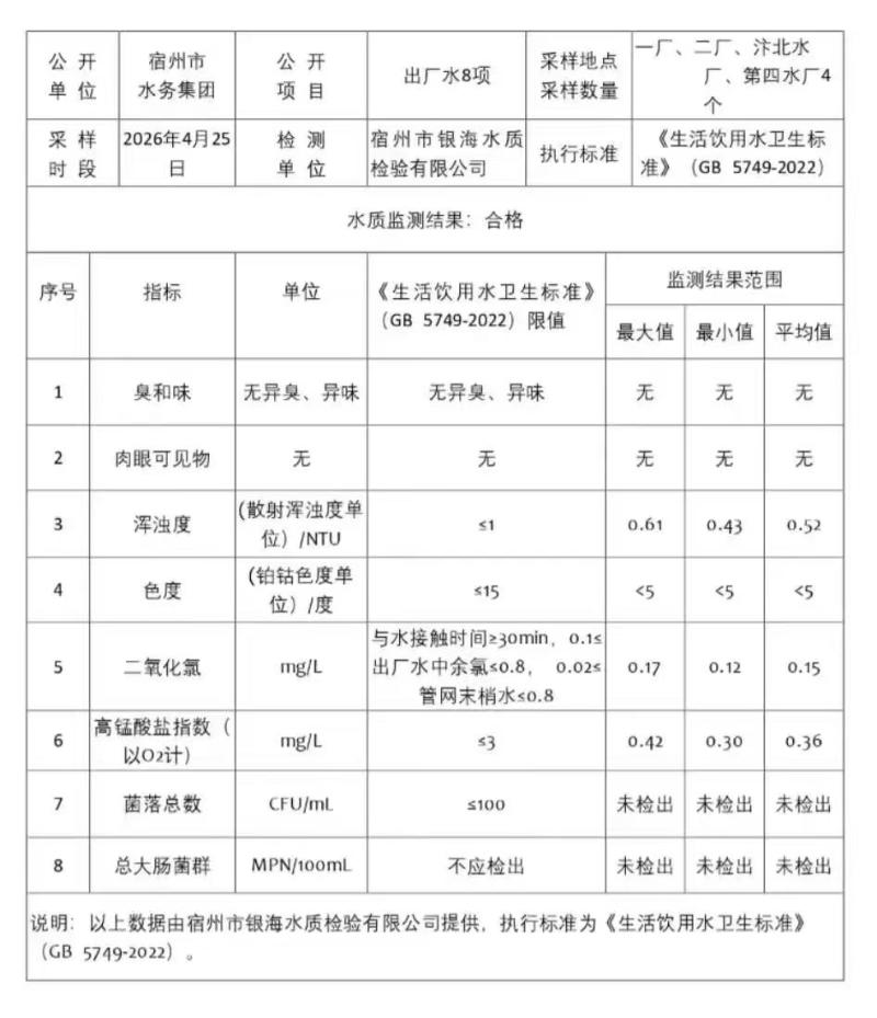2026年4月25日出厂水水质