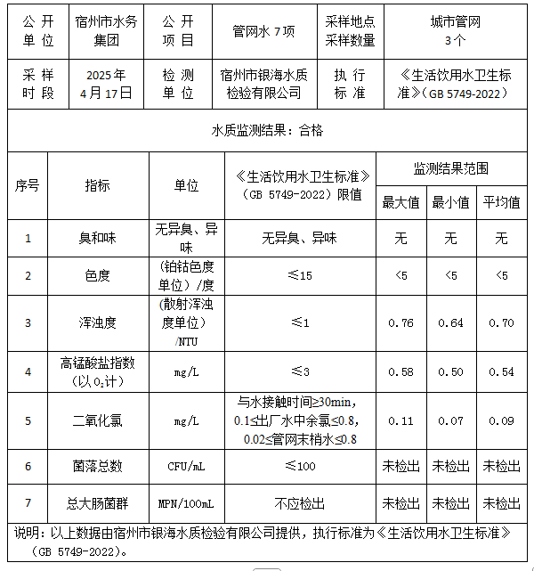 2025年4月17日管网水水质