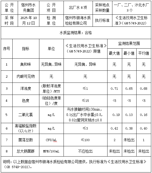 2025年10月12日出厂水水质
