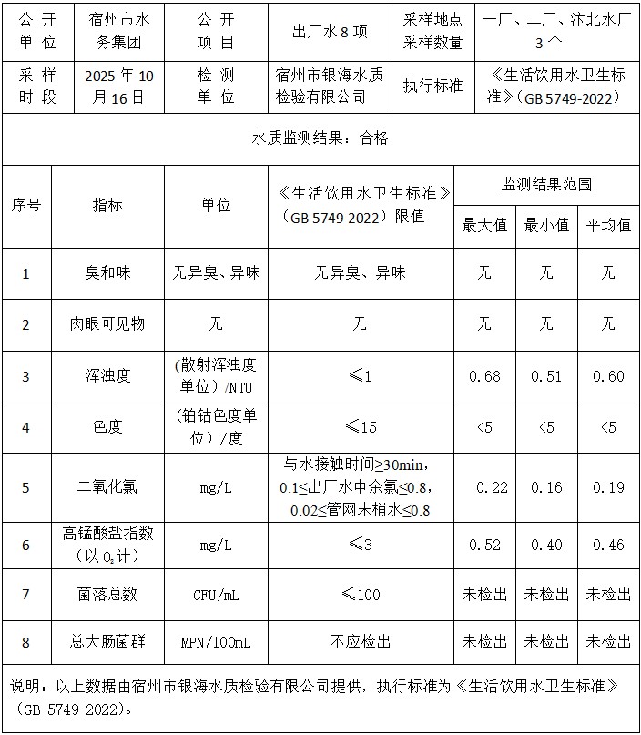 2025年10月16日出厂水水质