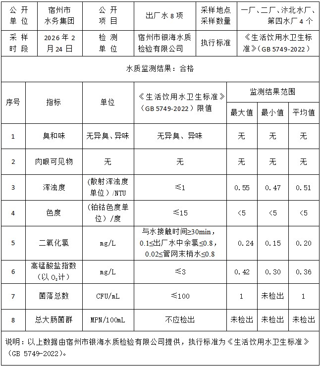 2026年2月24日出厂水水质