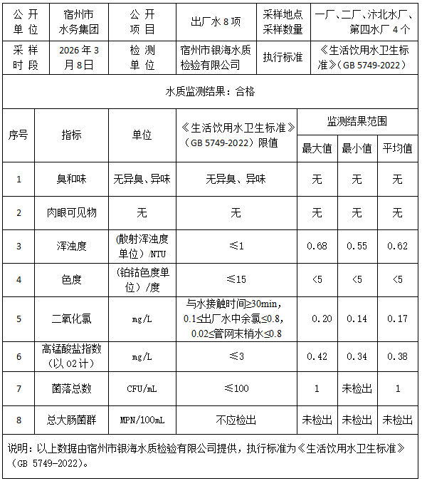 2026年3月8日出厂水水质